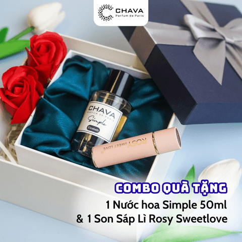 [COMBO QUÀ TẶNG] 1 NƯỚC HOA SIMPLE 50ML + 1 SON SÁP LÌ ROSY SWEET LOVE - CHAVA