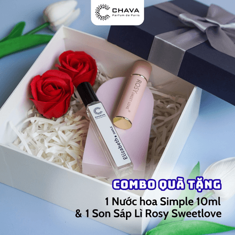 [COMBO QUÀ TẶNG] 1 NƯỚC HOA SIMPLE 10ML + 1 SON SÁP LÌ ROSY SWEET LOVE - CHAVA