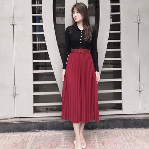 CHÂN VÁY XẾP LY KÈM ĐAI MIDI VINTAGE DÁNG CÔNG SỞ LƯNG CAO - CHIPXINHXK